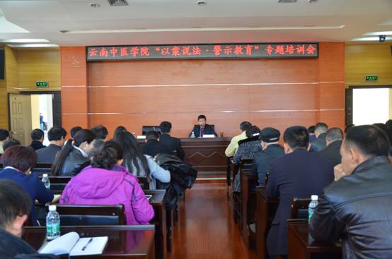 (纪委办公室)11月28日下午,学校“以案说法·警示教育”专题培训会在呈贡校区崇德楼122会议室召开。培训由中共云南省纪委纪检监察三室主任刀勇同志主讲。王翠岗副书记主持培训会,在家的李莹副校长出席会议,杨中梁纪委书记就培训会进行了总结发言。学校科以上干部、廉政教育兼职教师、党风廉政义务监督员共135人参会。